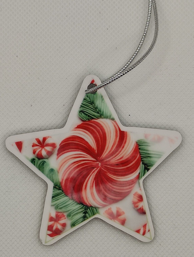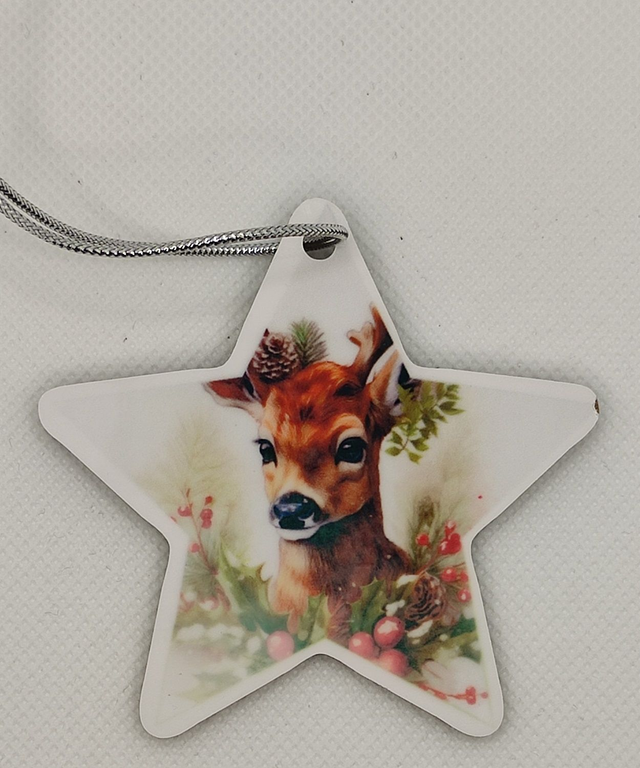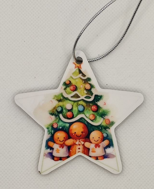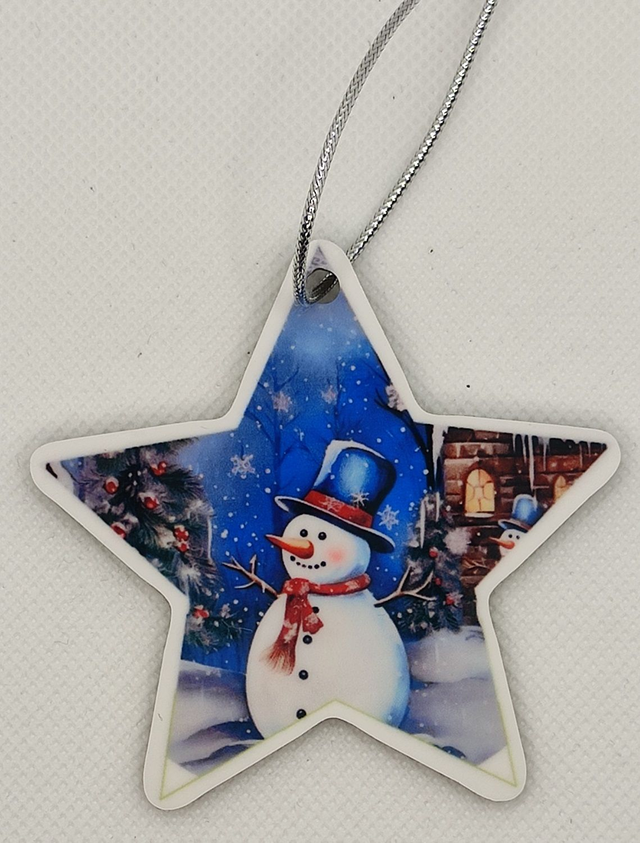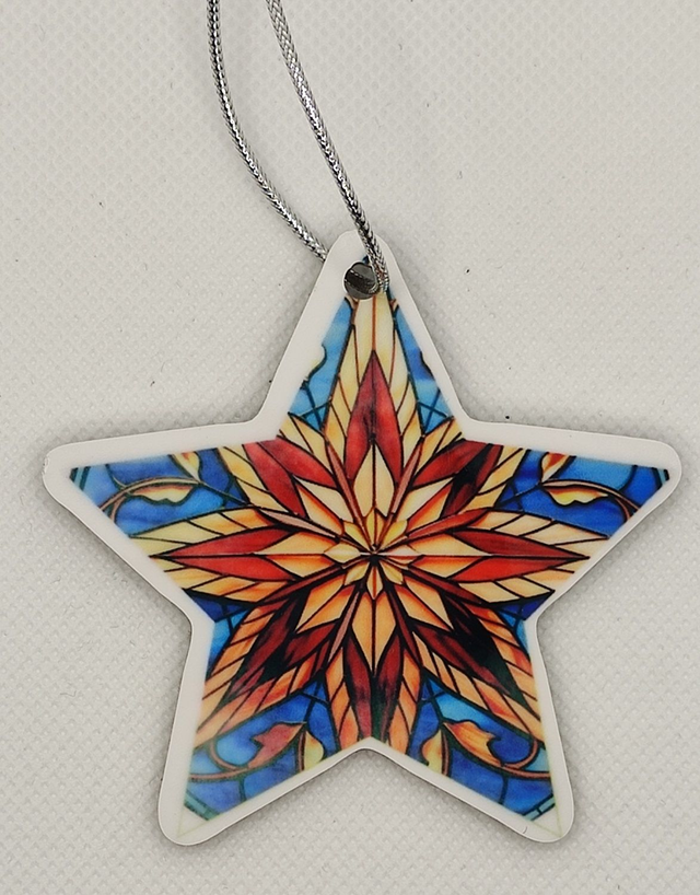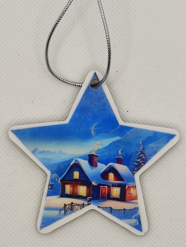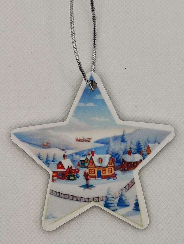 Décoration de Noël à suspendre en MDF dos noir forme Etoile 7 x 7 cm.